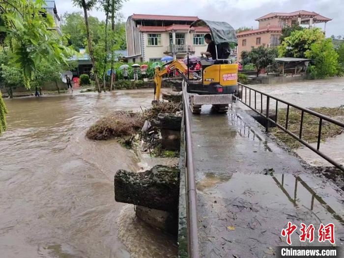 綿陽市安州區(qū)秀水鎮(zhèn)蟠龍村新橋橋洞堵塞,當?shù)氐谝粫r間進行疏通。 四川應(yīng)急供圖