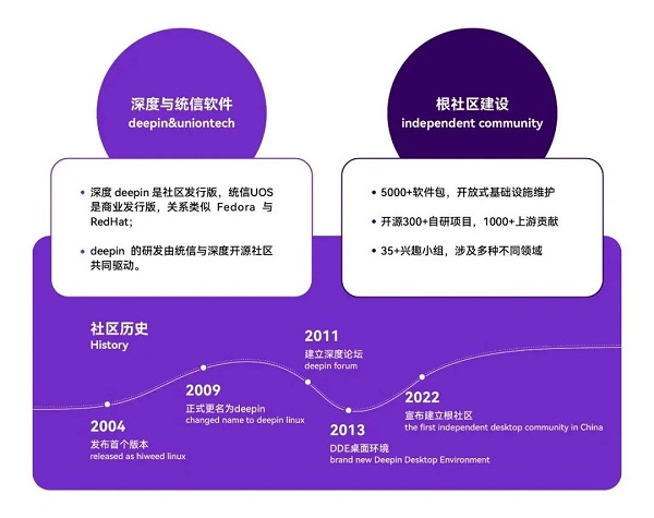 自2022年5月18日,深度社區(qū)宣布建設(shè)國內(nèi)首個桌面操作系統(tǒng)根社區(qū)以來,已經(jīng)構(gòu)建起基于Linux Kernel和其他開源組件的Linux根社區(qū),通過參與開源社區(qū)上游軟件的開發(fā)和維護工作逐步吸收并掌握其核心技術(shù)為我所用。