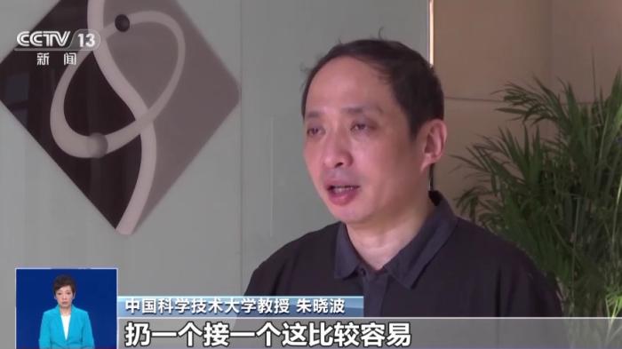 中國科學技術大學教授朱曉波:我們看過耍雜技的,他在天上扔飛盤,扔一個接一個這比較容易,扔兩個一起接就稍微難一點,扔三個就更難了。原來只能扔二十幾個,這已經(jīng)相當相當難了,因為國際社會學術界為這個已經(jīng)努力了很多很多年了。從2000年開始到我們這個成果發(fā)布以前,最多也就做到24個,現(xiàn)在我們一下子可以接51個飛盤,而且都接得穩(wěn)穩(wěn)的。