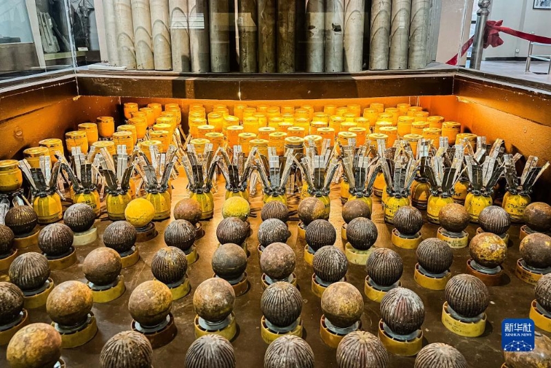 這是7月14日拍攝的越南首都河內(nèi)工兵博物館展出的美軍在越南戰(zhàn)爭期間使用的集束炸彈。新華社發(fā)(范庭德攝)