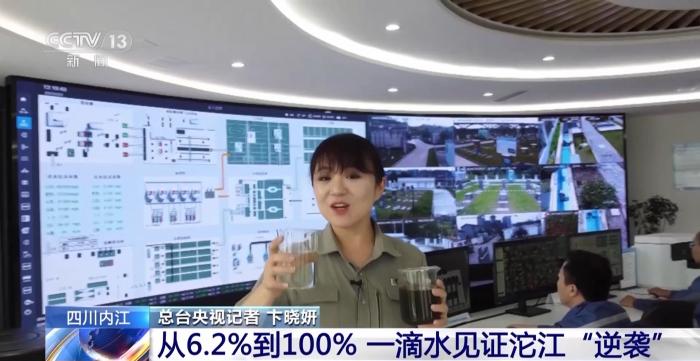 總臺央視記者卞曉妍:我左手這杯是還沒處理的污水,右手這杯是凈化過的再生水。這杯再生水不光是看著清澈,品質(zhì)也高,在我身后的屏幕上,顯示的是謝家河再生水廠的出水指標(biāo),幾種主要污染物的指標(biāo)在國標(biāo)基礎(chǔ)上又普遍降低了60%。脫胎換骨之后的再生水,即將重新回到城市,三分之一為水庫補(bǔ)水,三分之一澆灌綠地,最后的三分之一,又將去向哪里呢?我們?nèi)タ匆豢础?/p>