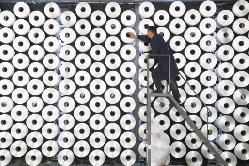 在浙江省杭州市臨安區(qū)天目山鎮(zhèn)一家紡織企業(yè),工人在車間里忙碌(3月2日攝)。新華社發(fā)(胡劍歡 攝)
