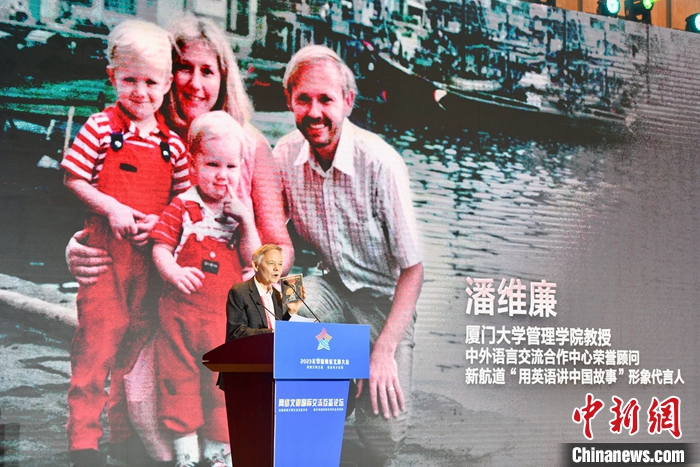 7月18日,2023年中國(guó)網(wǎng)絡(luò)文明大會(huì)網(wǎng)絡(luò)文明國(guó)際交流互鑒論壇在廈門舉辦。圖為廈門大學(xué)美籍教授潘維廉作主題演講。中新社記者 王東明 攝