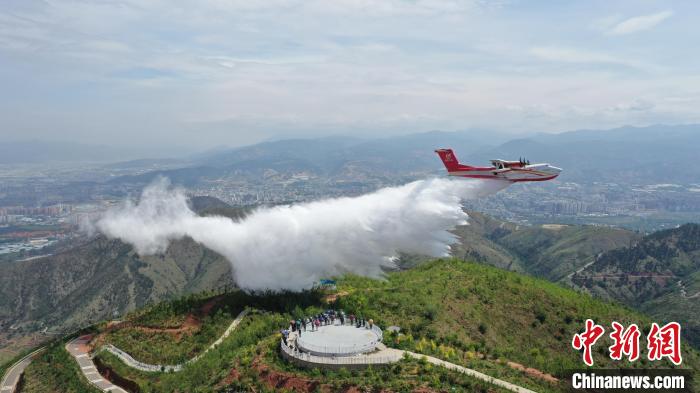 AG600(滅火型)1005架機在西昌進行投水試驗。(中國航空工業(yè)供圖)