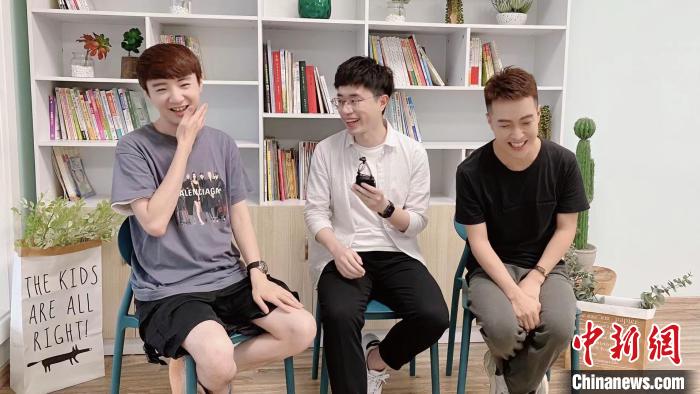 2021年6月2日,臺(tái)青陳圣浩(左一)和朋友們?cè)谡憬贾菀黄鹋臄z影視節(jié)目?!埌垸i 攝