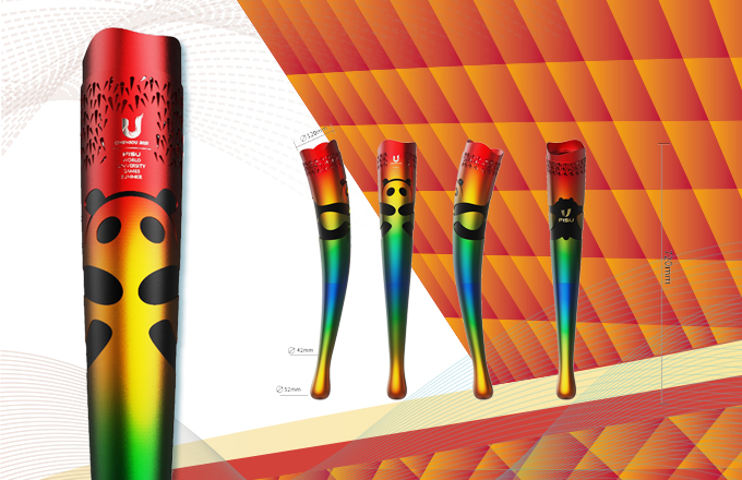 成都大運(yùn)會(huì)火炬“蓉火”取成都的簡(jiǎn)稱(chēng)“蓉”,同時(shí)寓有“融合”“包容”之意?;鹁孢\(yùn)用多彩漸變的大運(yùn)會(huì)主視覺(jué)色塊,將朱紅、明黃、翠綠、湖藍(lán)四個(gè)漸變色整合起來(lái),又呈現(xiàn)成都熱情、活力、時(shí)尚的多彩生活與大學(xué)生的斑斕青春。
