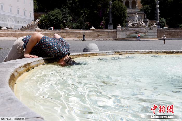 當?shù)貢r間7月18日,熱浪席卷意大利,一人在羅馬西班牙廣場降溫。