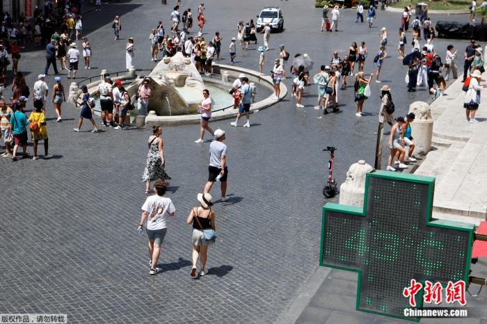 當?shù)貢r間7月18日,熱浪席卷意大利,人們在羅馬西班牙廣場附近消遣,預計未來幾天氣溫還會上升。