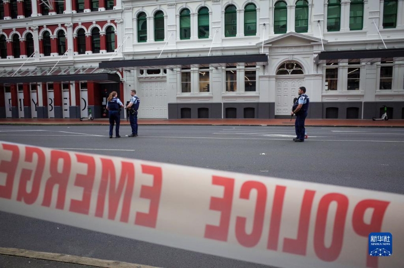 7月20日,在新西蘭奧克蘭,警方封鎖槍擊事件現(xiàn)場(chǎng)附近道路。新西蘭第一大城市奧克蘭市中心20日早晨發(fā)生一起槍擊事件。據(jù)當(dāng)?shù)囟嗉颐襟w報(bào)道,這起事件已造成包括槍手在內(nèi)3人死亡、多人受傷,傷者中包括至少一名警察。新華社發(fā)(盧意攝)