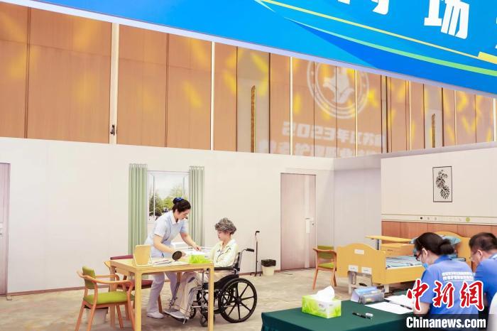 中新網(wǎng)南京7月20日電(唐凡 徐珊珊)7月20日,由江蘇省民政廳、江蘇省人力資源和社會(huì)保障廳共同主辦的2023年江蘇省養(yǎng)老護(hù)理職業(yè)技能競(jìng)賽決賽在鹽城開(kāi)幕。決賽選手呈現(xiàn)年輕化、專(zhuān)業(yè)化趨勢(shì),本科及以上學(xué)歷占75%,平均年齡為31歲,其中“90后”占71%,最年輕的選手為24歲。