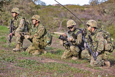 日本自衛(wèi)隊(duì)人員參加軍事演習(xí)。