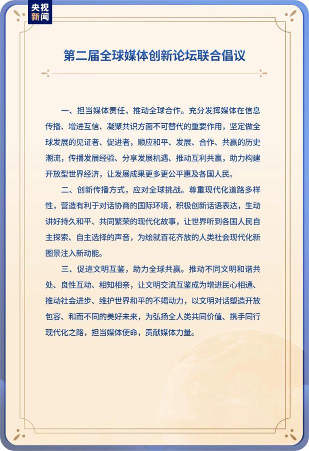 該倡議由中國中央廣播電視總臺與亞洲—太平洋廣播聯(lián)盟、阿拉伯國家廣播聯(lián)盟、非洲廣播聯(lián)盟、歐洲新聞交換聯(lián)盟、拉美新聞聯(lián)盟等國際媒體組織聯(lián)合發(fā)起,倡導擔當媒體責任、推動全球合作;創(chuàng)新傳播方式、應對全球挑戰(zhàn);促進文明互鑒、助力全球共贏。為弘揚全人類共同價值、攜手同行現代化之路,擔當媒體使命,貢獻媒體力量。