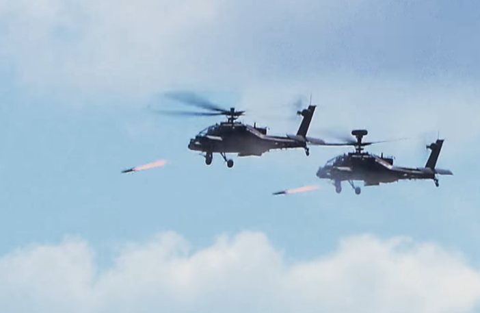 阿帕契攻擊直升機(jī)發(fā)射地獄火飛彈。
