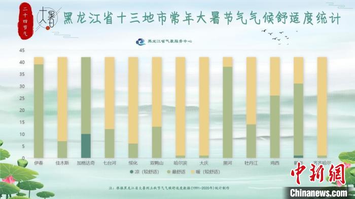 中新網(wǎng)哈爾濱7月23日電(黃英偉 記者姜輝)23日是大暑節(jié)氣,時值“三伏天”里的“中伏”前后,是一年中最熱的時段。對于黑龍江省很多地區(qū)來說,大暑節(jié)氣卻不是最熱的節(jié)氣,“大暑”首日,日平均氣溫只有佳木斯、牡丹江超過25℃,全省都很清涼舒適。從歷史數(shù)據(jù)來看,齊齊哈爾、黑河、大慶、哈爾濱、綏化、加格達(dá)奇等地最熱的節(jié)氣是“小暑”。