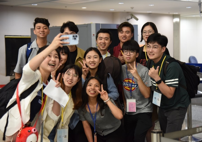 7月23日,即將結(jié)束參訪交流行程的大陸學(xué)生與這些天來朝夕相處的臺灣青年學(xué)生在桃園機(jī)場告別,并合影留念。新華社記者 陳君 攝