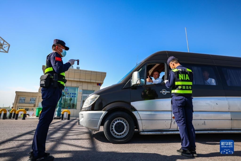 7月21日,霍爾果斯出入境邊防檢查站執(zhí)勤民警在對入境車輛進(jìn)行查驗(yàn)。