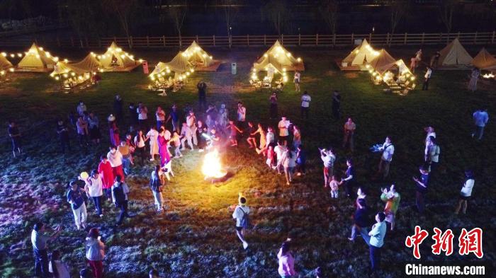 太行風(fēng)情民俗街蜿蜒曲折,百余家特色店鋪星羅其間。夜幕下,萬余平方米的“在山野”精致露營地豐草如茵,幾十頂露營帳篷星星點點。易水自搭露營、篝火晚會、音樂派對精彩上演,游客沉浸式體驗夜游之樂……
