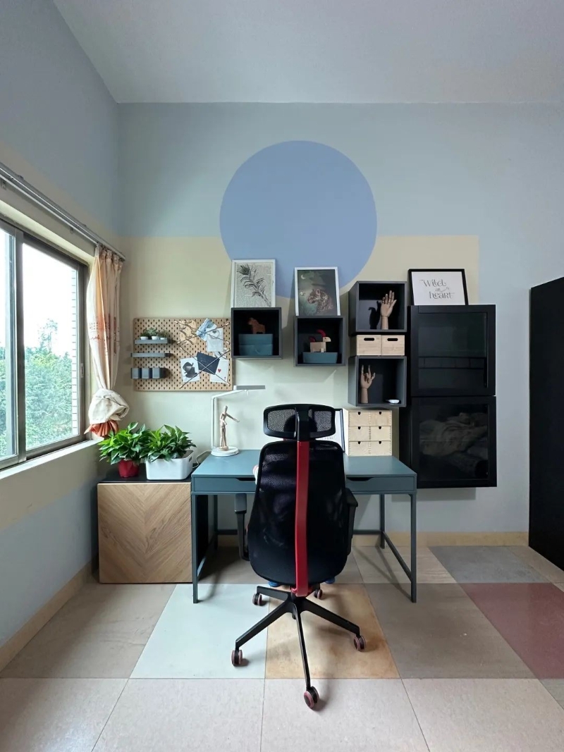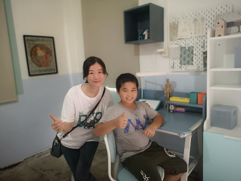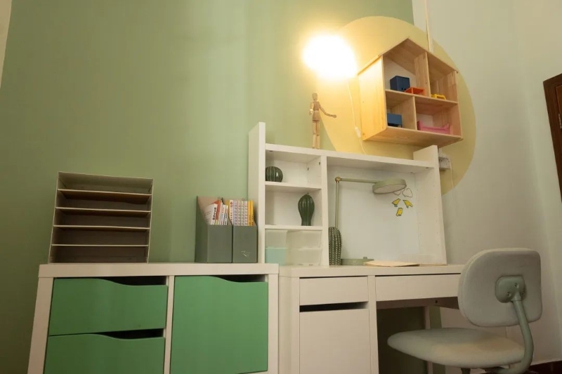 多樂士專業(yè)團(tuán)隊(duì)上門為破舊的房間墻體做了基礎(chǔ)的修復(fù),配色方案以明亮通透的色調(diào)為主,靠近房門角落處的學(xué)習(xí)空間重點(diǎn)做了大膽跳色處理,清新的煙柳灰綠搭配上自由感十足的天真藍(lán),讓整個(gè)區(qū)域劃分更加分明。同時(shí),宜家家居為境倫配置了多功能學(xué)習(xí)桌椅、書柜等家具。改造一新的房間讓小境倫幾乎認(rèn)不出,他甚至懷疑自己走錯(cuò)了門,不敢相信以后可以在這么漂亮的房間里學(xué)習(xí)生活,開心的小境倫主動(dòng)要求和回訪的多樂士阿姨合影,他說要記住阿姨的樣子,謝謝多樂士為他帶來的幸福感。