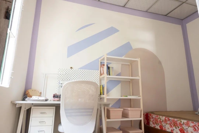 6月初,多樂士的工作人員上門了,姐妹倆聽說家里可以免費(fèi)進(jìn)行煥新,別提多高興了!姐姐喜歡蜜桃粉,妹妹喜歡淺紫色,姐妹倆希望家里能夠像公主房間一樣是夢幻的粉紫色。為此,多樂士專業(yè)團(tuán)隊(duì)經(jīng)過上門基檢,專業(yè)配色。為姐妹倆打造了一個(gè)“蜜桃粉+夢幻紫”的少女空間,整體風(fēng)格清新又溫暖,直接戳中了姐妹倆的小心窩。
