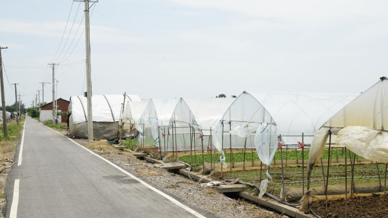 武漢市江夏區(qū)長江村里的蔬菜大棚。新華社記者方亞東 攝