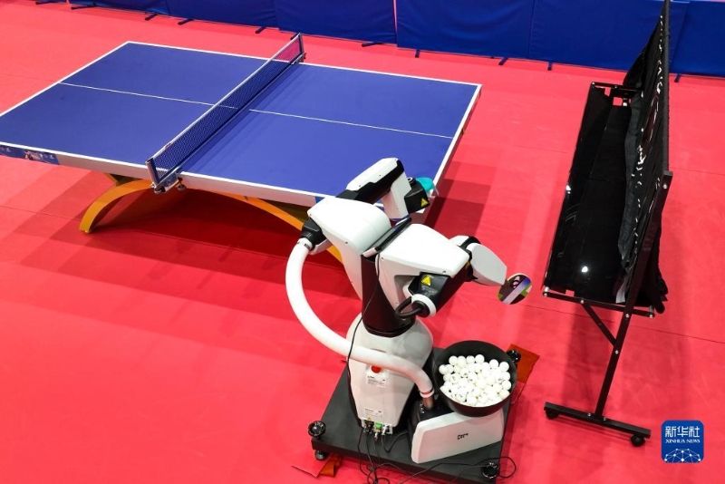 這是7月22日在成都高新體育中心多功能館拍攝的乒乓球訓(xùn)練機(jī)器人。該設(shè)備通過(guò)模擬人體動(dòng)作發(fā)球,方便接球者對(duì)發(fā)球動(dòng)作進(jìn)行觀察和預(yù)判。同時(shí)可以自定義發(fā)球的速度、旋轉(zhuǎn)和落點(diǎn),針對(duì)訓(xùn)練需求設(shè)定多種打法的訓(xùn)練動(dòng)作體系,幫助運(yùn)動(dòng)員高效精準(zhǔn)調(diào)整訓(xùn)練。