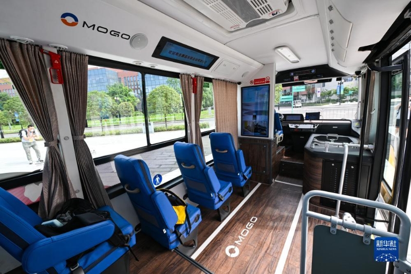 這是7月15日拍攝的大運(yùn)村自動(dòng)駕駛巴士?jī)?nèi)部。