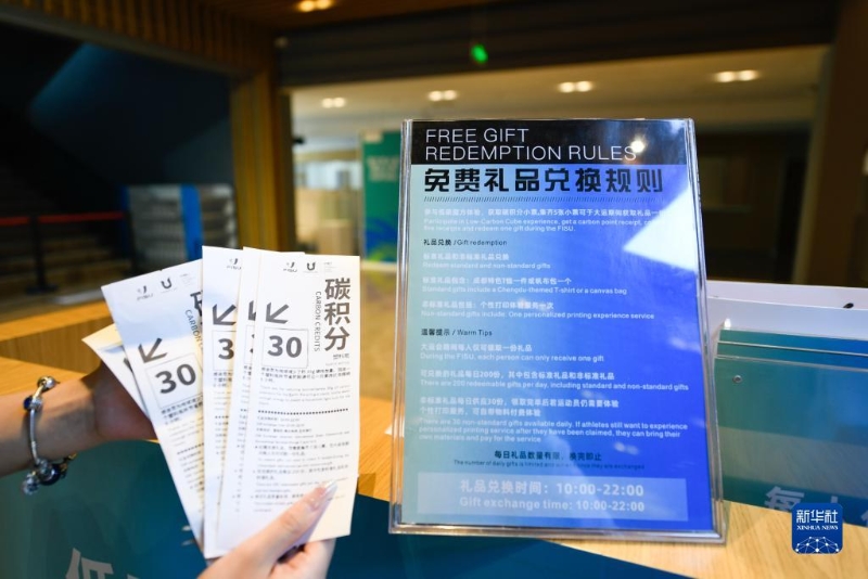 7月16日,在大運(yùn)村藝術(shù)中心內(nèi),工作人員展示“低碳魔方”兌換的“碳積分”小票。