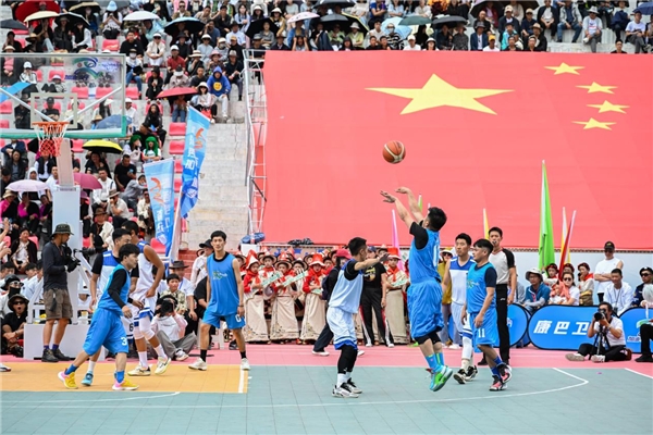 “普灑!秀加!讓我們熱情歡迎陽(yáng)光普灑隊(duì)登場(chǎng)……”隨著現(xiàn)場(chǎng)歡呼聲響起,首場(chǎng)“高原村BA”在四川甘孜州道孚縣拉開(kāi)帷幕。