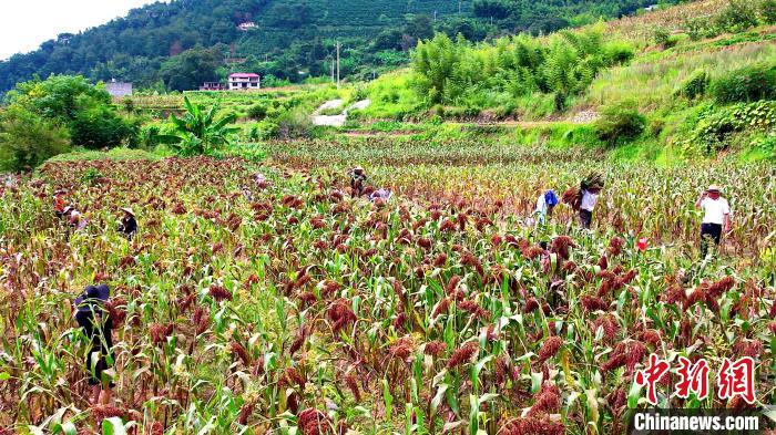 中新網(wǎng)福建永定7月25日電 (熊川 黃秋萍)盛夏時(shí)節(jié),在福建省龍巖市永定區(qū)堂堡鎮(zhèn)近千畝的“訂單高粱”已經(jīng)成熟,進(jìn)入收獲階段;紅彤彤的高粱與鄉(xiāng)村美景交相輝映,成為一道獨(dú)特的風(fēng)景。