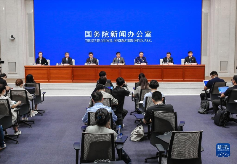 7月25日,國務(wù)院新聞辦公室在北京舉行國務(wù)院政策例行吹風(fēng)會,請應(yīng)急管理部副部長、水利部副部長王道席,國家消防救援局副局長羅永強(qiáng),自然資源部地質(zhì)勘查管理司司長于海峰,水利部水旱災(zāi)害防御司司長姚文廣,應(yīng)急管理部防汛抗旱司司長陳敏,中國氣象局應(yīng)急減災(zāi)與公共服務(wù)司負(fù)責(zé)人王亞偉介紹防汛抗旱工作情況,并答記者問。新華社發(fā)(劉健 攝)