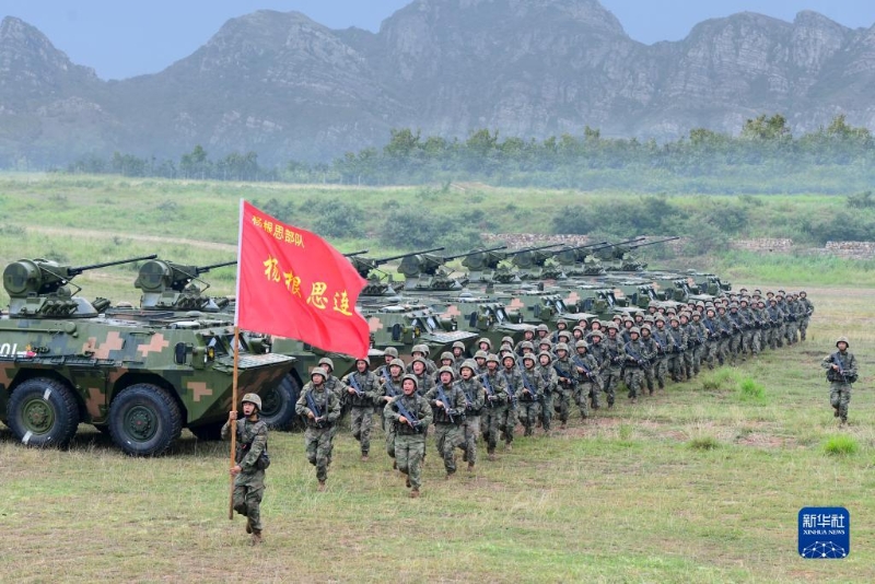 中部戰(zhàn)區(qū)陸軍第83集團(tuán)軍某旅“楊根思連”官兵野外機(jī)動(7月21日攝)。新華社發(fā)(季鵬 攝)