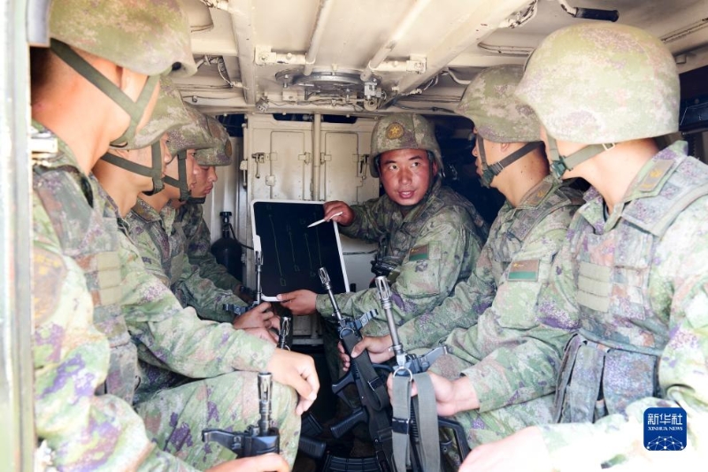 中部戰(zhàn)區(qū)陸軍第83集團(tuán)軍某旅“楊根思連”連長仇安(右三)組織骨干在對抗演練中研究戰(zhàn)術(shù)(5月25日攝)。新華社發(fā)(季鵬 攝)
