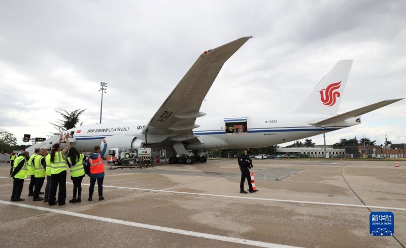 7月25日,在法國巴黎戴高樂機(jī)場,工作人員向搭載“圓夢”的飛機(jī)揮手致意。