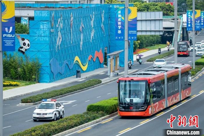 中新網(wǎng)成都7月25日電 (記者 王鵬)25日上午,由中國中車株洲電力機車研究所有限公司自主研發(fā)制造,蜀道集團投資、建設(shè)、運營的新一代“智軌列車”在成都亮相,在成都東軸線快速公交K7線(區(qū)間線)載客試運行,將直達成都東安湖體育公園,助力成都大運會。