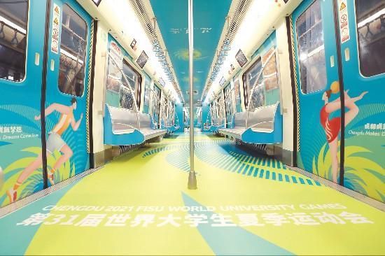 2023年4月,在第31屆世界大學(xué)生夏季運(yùn)動(dòng)會(huì)即進(jìn)入倒計(jì)時(shí)100天之際,伴隨著清脆的鳴笛響起,大運(yùn)會(huì)倒計(jì)時(shí)100天主題列車4月17日從成都地鐵1號(hào)線緩緩駛出,驚艷亮相。
