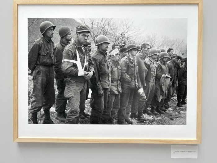 圖為現(xiàn)場(chǎng)展出照片,張崇岫拍攝于1951年4月江口洞戰(zhàn)役中,中國(guó)人民志愿軍俘虜大批美軍士兵。新華社記者余俊杰 攝