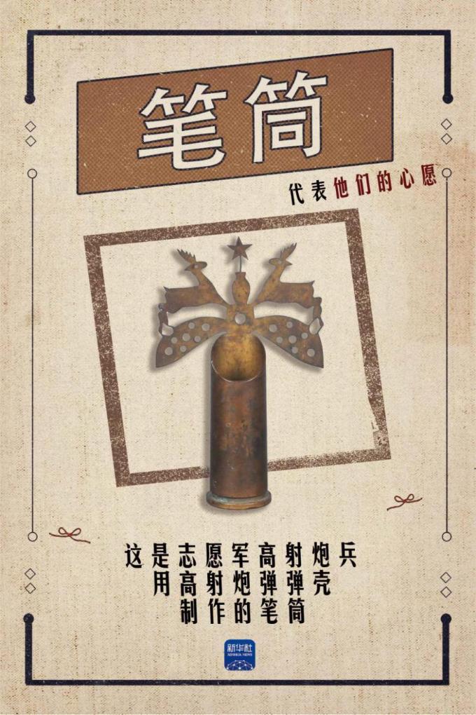在這件用高射炮彈彈殼制作的筆筒上方