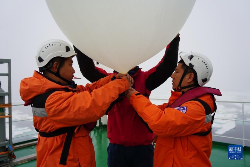 7月26日,中國第13次北冰洋科學(xué)考察隊(duì)隊(duì)員在執(zhí)行氣象探空氣球布放作業(yè)。新華社記者 魏弘毅 攝