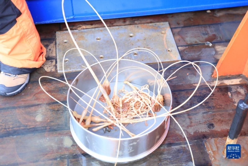 7月26日拍攝的底棲生物拖網(wǎng)出水瞬間。新華社記者 魏弘毅 攝