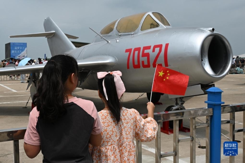 7月27日,在空軍航空開放活動·長春航空展首個公眾日,觀眾在觀看米格-15飛機。