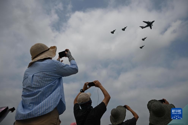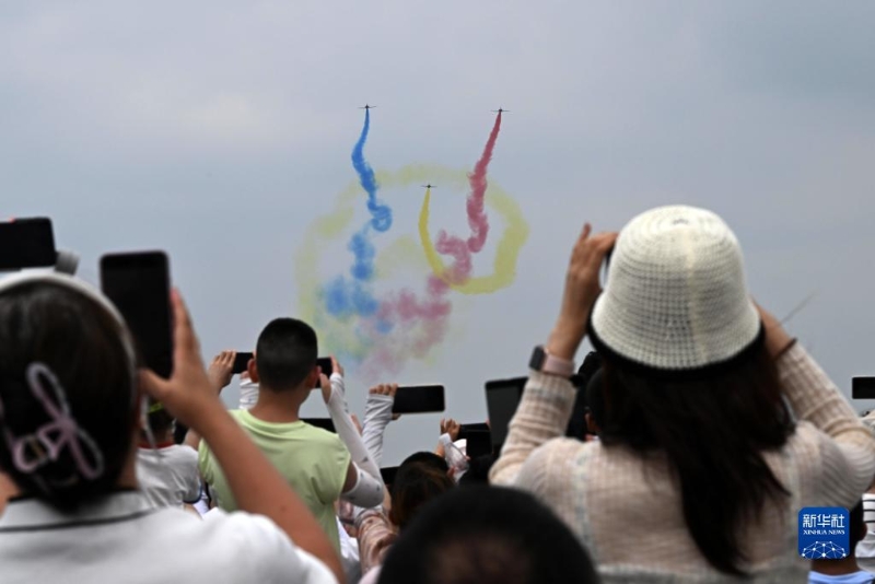 7月27日,在空軍航空開放活動·長春航空展首個公眾日,觀眾在觀看飛行展示。
