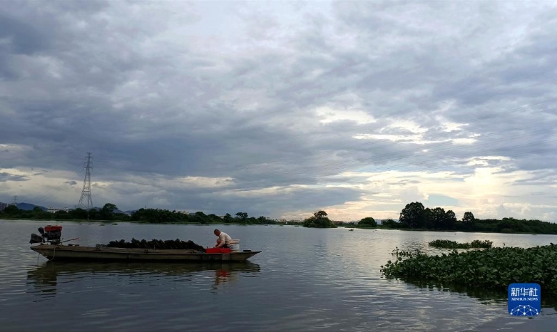 7月27日下午,漁夫在廣東省汕頭市江邊收漁網(wǎng)。