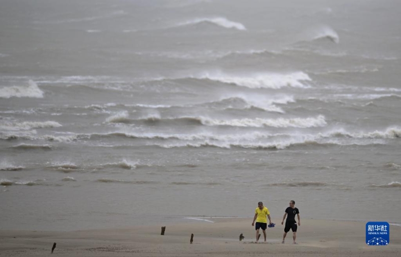 受臺風(fēng)影響,福州市長樂區(qū)沿海一帶風(fēng)力逐漸加強(qiáng)(7月27日攝)。