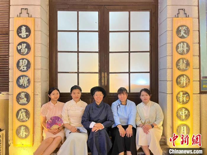 臺(tái)青在橫店換上特色服飾,合影留念。陳慧芬攝