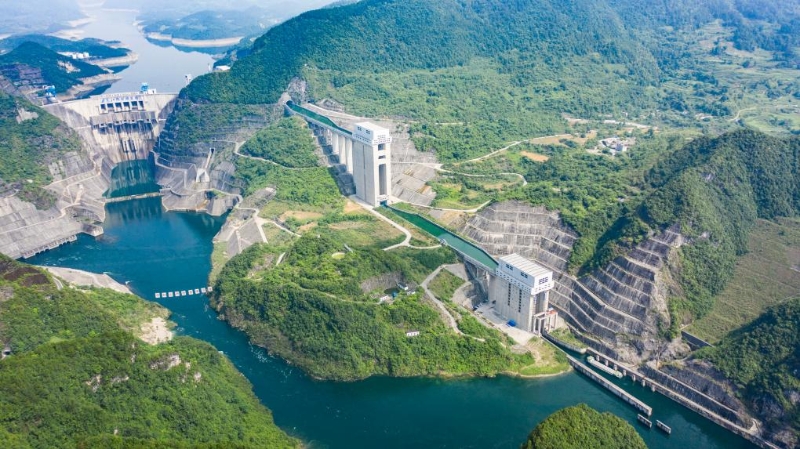 烏江構(gòu)皮灘水電站通航工程(2021年6月22日攝,無人機照片)。新華社記者陶亮 攝