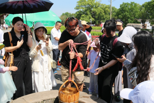 (圖為實(shí)踐隊隊員體驗打紅井水)