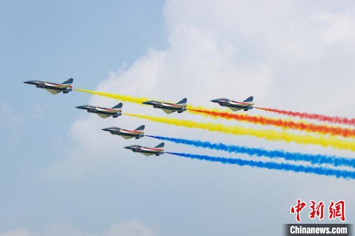 7月26日,2023年空軍航空開放活動·長春航空展在吉林長春開幕??哲姲艘伙w行表演隊換裝殲-10C后首次在國內公開亮相表演。中新社記者 賈天勇 攝