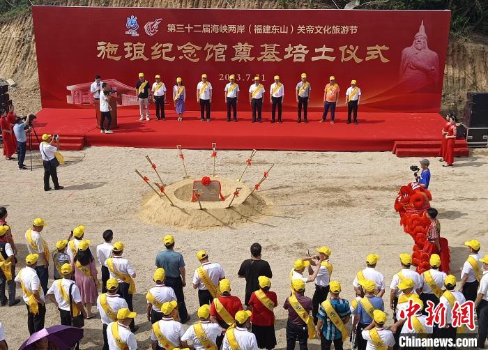 7月31日,紀念施瑯將軍東山出師收復(fù)臺灣340周年系列活動在福建漳州東山縣舉行,圖為施瑯紀念館奠基培土儀式現(xiàn)場。東山縣陳城鎮(zhèn)供圖