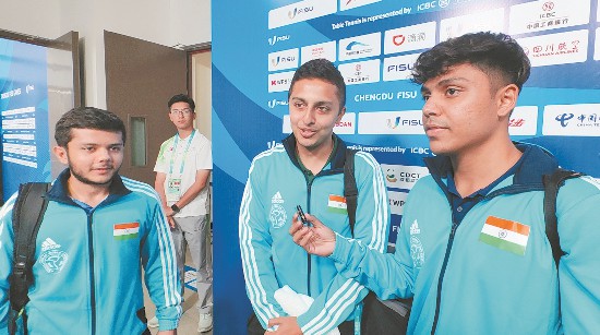 瑞士大學(xué)生乒乓球男隊(duì)在昨日的比賽中擊敗美國隊(duì),成功晉級(jí)男子團(tuán)體比賽下一輪。隊(duì)員哈德邁爾說:“成都是一個(gè)非常好的城市,我們生活的大運(yùn)村也非常棒,人們都很好,也非常友善?!标?duì)員卡林說道:“來到這里之后大多數(shù)時(shí)間都在訓(xùn)練和比賽,所以還沒有更多的時(shí)間了解成都。但我們最想去看大熊貓。”
