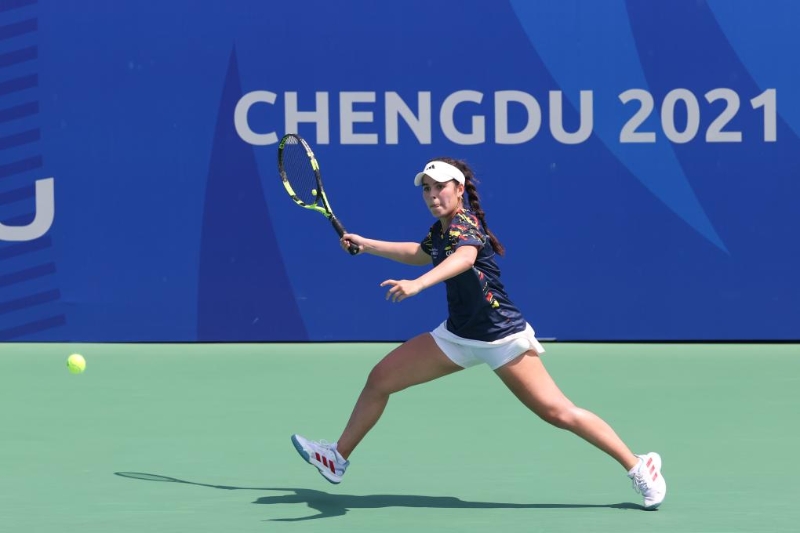 哥倫比亞隊(duì)選手帕迪拉在成都大運(yùn)會(huì)網(wǎng)球比賽中。圖片來(lái)自成都大運(yùn)會(huì)網(wǎng)上新聞中心
